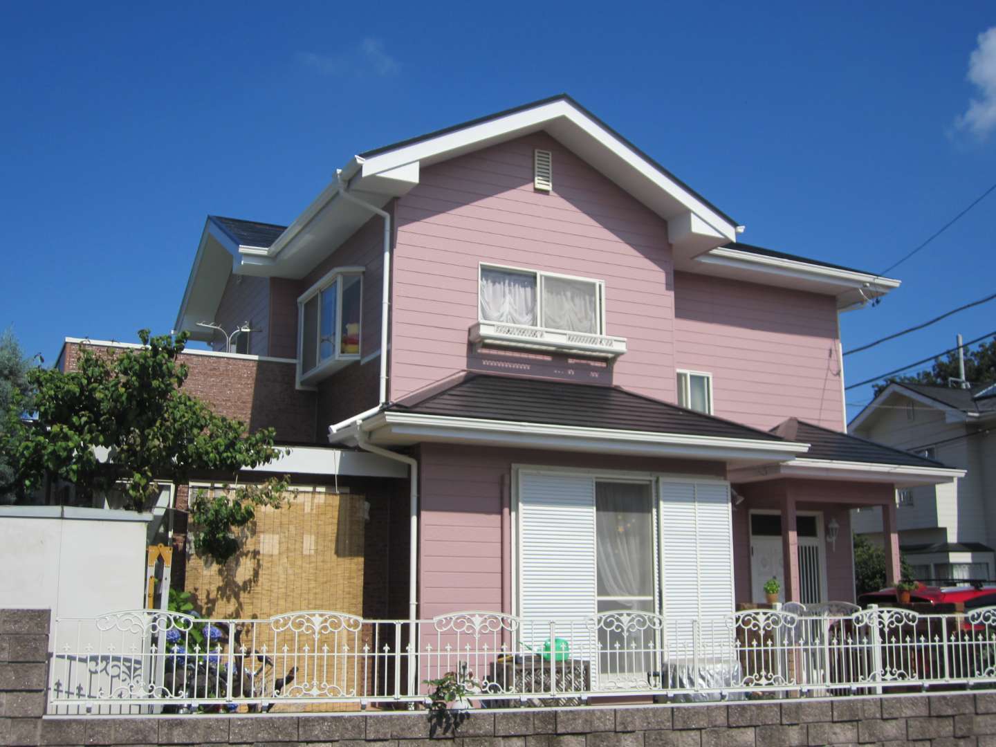 築25年が経過し、雨樋のゆがみと塗膜の剥がれ、屋根や外壁の色褪せやチョーキング現象が発生していました。これらの劣化を改善するため、雨樋はこのまま塗装をしても綺麗に仕上がらないため交換、屋根と外壁の塗装工事を実施。お客様お好みの可愛らしい外観に仕上がり、建物全体の美観と防水性能が向上し、安心してお住まいいただける状態となりました。